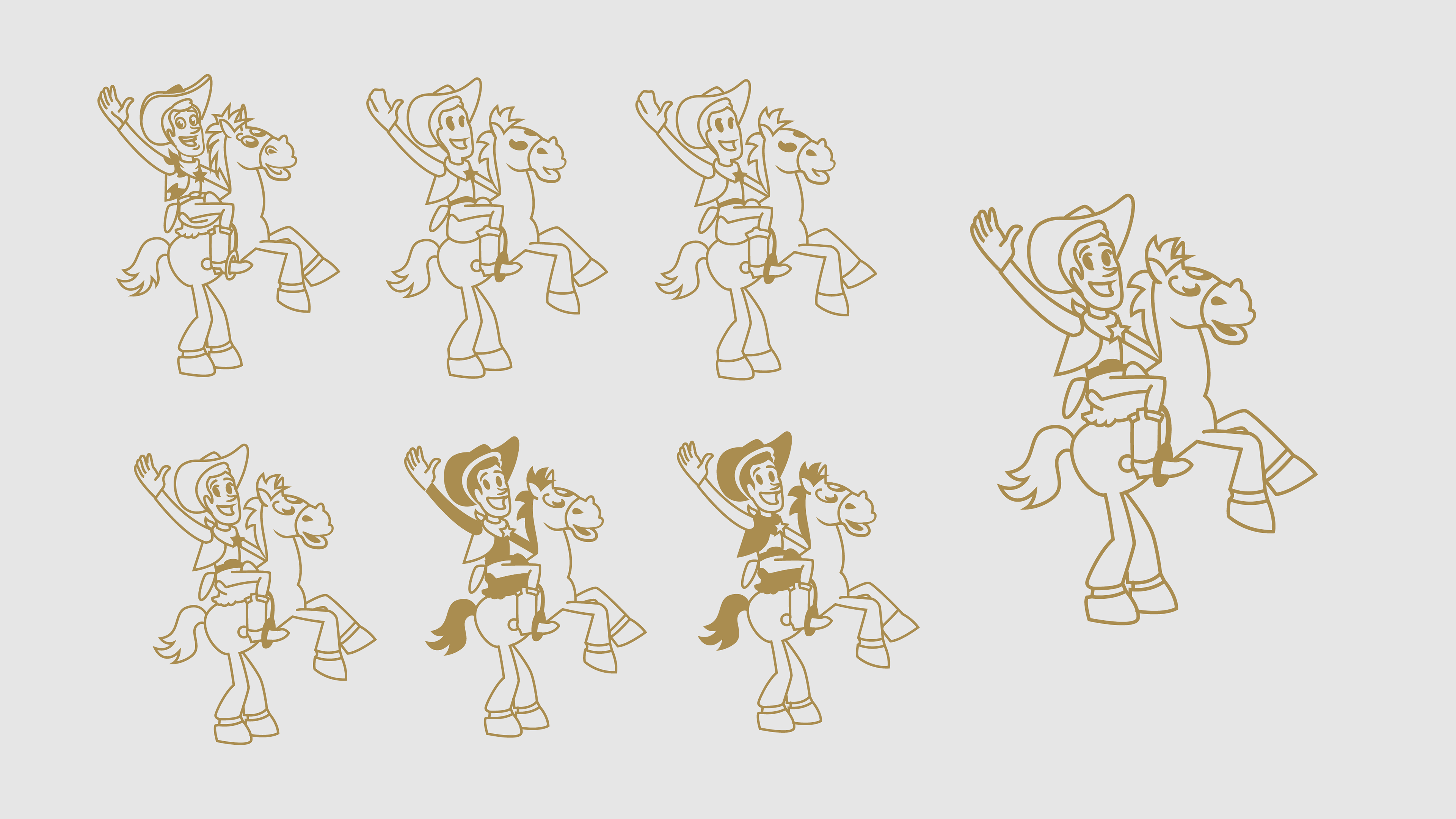 Custom artwork based on the original Woody's Roundup toys and Toy Story product packaging